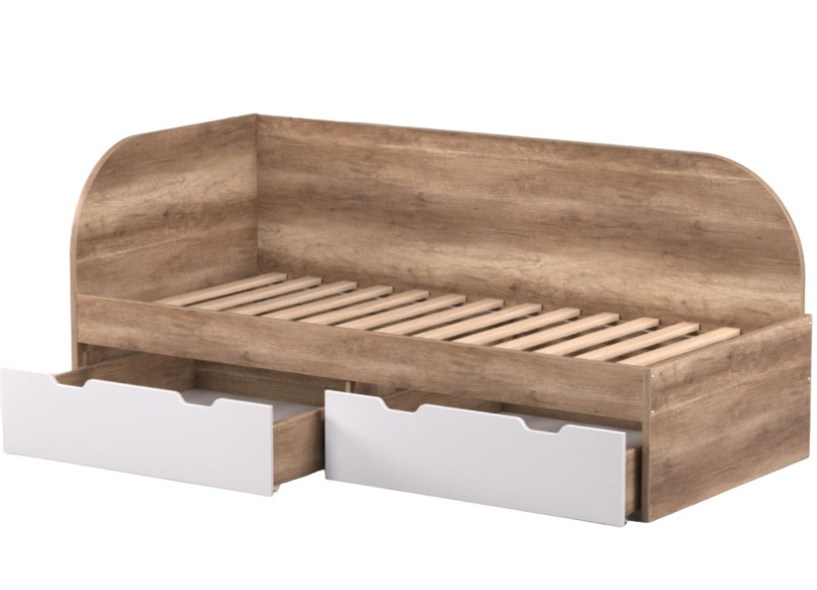 Moderná jednolôžková posteľ do detskej izby REA GARY je vyrobená z kvalitnej laminovanej drevotrieskovej dosky. A keďže bezpečnosť detí je pre nás prioritou, tak posteľ má na okrajoch zaoblené čelá bez ostrých hrán, ktoré sú spojené pevnou bočnicou. Pod lôžkom na spanie sa nachádzajú dve praktické zásuvky s úložným priestorom napríklad na detské hračky alebo periny, ktoré jednoducho vysuniete vďaka kolieskam na spodnej strane. Odporúčaná hmotnosť jedného jedinca na posteľ je max. 150 kg.