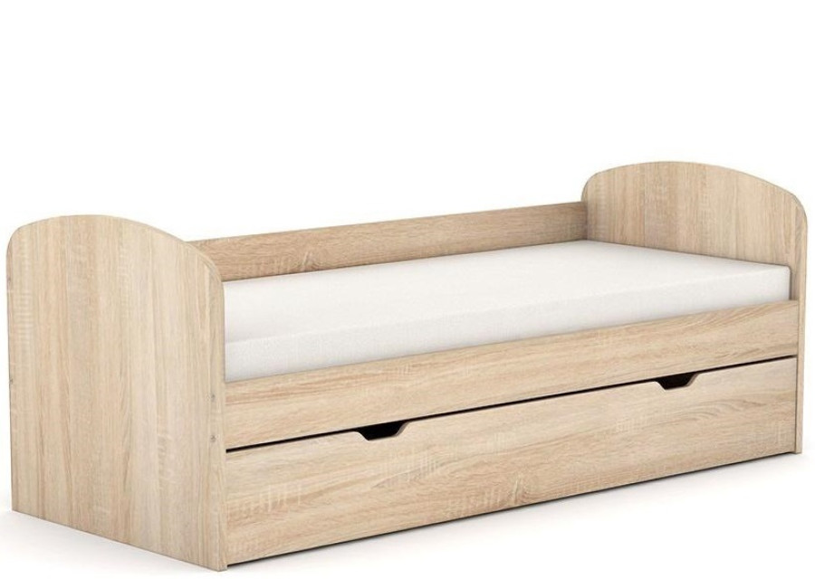 Moderná jednolôžková posteľ 80x200 cm s úložným priestorom REA KAKUNA do detskej izby je vyrábaná z kvalitnej laminovanej drevotrieskovej dosky. A keďže bezpečnosť detí je pre nás prioritou, tak posteľ má na okrajoch zaoblené čelá bez ostrých hrán, ktoré sú spojené pevnou bočnicou. Pod lôžkom na spanie sa nachádza praktická zásuvka s úložným priestorom napríklad na detské hračky alebo periny, ktoré jednoducho vysuniete vďaka kolieskam na spodnej strane. Odporúčaná hmotnosť jedného jedinca na posteľ je max. 150 kg. V cene postele je masívny smrekový rošt.