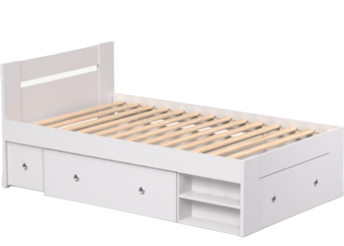 Jednolôžková posteľ 120x200 cm REA LARISA je moderná študentská posteľ s úložným priestorom (2 zásuvky na kolieskach) a vstavaným nočným stolíkom (1 stolík na kolieskach). Vyrobená je z kvalitnej laminovanej drevotriesky v hrúbke 2,5cm a 1,6cm a ABS hranami. Výška od zeme po hornú hranu roštu je 45 cm. Slovenské postele spĺňajú celý rad kritérií ako tvar lôžka, jednoduchá a ľahká údržba a priedušnosť použitých materiálov.