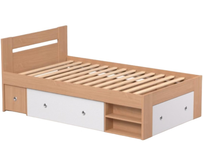 Jednolôžková posteľ 120x200 cm REA LARISA je moderná študentská posteľ s úložným priestorom (2 zásuvky na kolieskach) a vstavaným nočným stolíkom (1 stolík na kolieskach). Vyrobená je z kvalitnej laminovanej drevotriesky v hrúbke 2,5cm a ABS hranami. Výška od zeme po hornú hranu roštu je 45 cm. Slovenské postele spĺňajú celý rad kritérií ako tvar lôžka, jednoduchá a ľahká údržba a priedušnosť použitých materiálov.