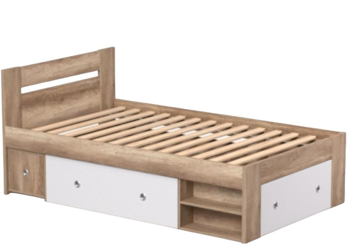 Jednolôžková posteľ 120x200 cm REA LARISA je moderná študentská posteľ s úložným priestorom (2 zásuvky na kolieskach) a vstavaným nočným stolíkom (1 stolík na kolieskach). Vyrobená je z kvalitnej laminovanej drevotriesky v hrúbke 2,5cm a 1,6 cm a ABS hranami. Výška od zeme po hornú hranu roštu je 45 cm. Slovenské postele spĺňajú celý rad kritérií ako tvar lôžka, jednoduchá a ľahká údržba a priedušnosť použitých materiálov.