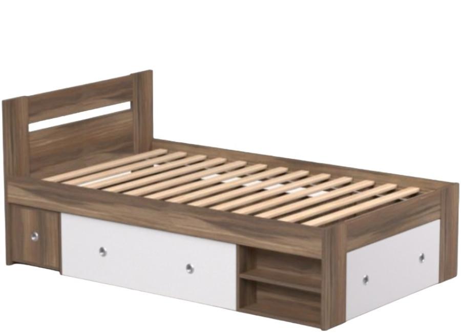 Jednolôžková posteľ 120x200 cm REA LARISA je moderná študentská posteľ s úložným priestorom (2 zásuvky na kolieskach) a vstavaným nočným stolíkom (1 stolík na kolieskach). Vyrobená je z kvalitnej laminovanej drevotriesky v hrúbke 2,5cm a 1,6cm a ABS hranami. Výška od zeme po hornú hranu roštu je 45 cm. Slovenské postele spĺňajú celý rad kritérií ako tvar lôžka, jednoduchá a ľahká údržba a priedušnosť použitých materiálov.