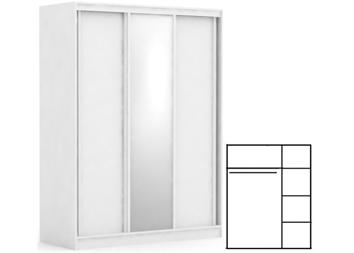 Šatníková skriňa REA ATLANTA 2 s posuvnými dverami a zrkadlom je určená do každej miestnosti v byte alebo dome. Úložné priestory skrine sú rozdelené na dve časti. Pravá časť skrine je policová a je rozdelená na štyri rovnaké časti. Ľavá časť skrine umožňuje zavesiť oblečenie na vešiakovú tyč, nad ktorou sa nachádza polica, do ktorej je možné uložiť menej používané šatstvo. Korpus šatníkovej skrine je uzatvárateľný praktickými tromi posuvnými dverami. Stredné dvere sú so zrkadlom.