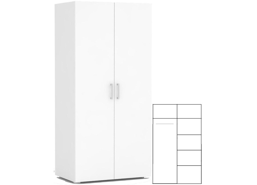 Vešiaková skriňa REA VENEZIA 2 do spálne je ideálnym úložným priestorom na obleky, nohavice, košele alebo večerné šaty, do ktorejkoľvek časti spálňovej steny zo sektorového nábytku REA VENEZIA. Vešiaková skriňa má vo vrchnej časti policu, ktorá poskytuje úložný priestor na oblečenie. Je delená na polovicu, ľavá je určená na vešanie vecí.. pravá strana je policová. Vešiaková skriňa do spálne je vyrobená z laminovanej drevotrieskovej dosky.