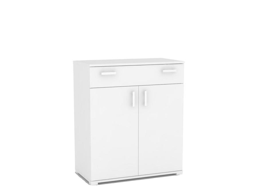 Komoda s praktickou zásuvkou a dvomi dvierkami. Vo vnútri komody je jedna polica. Komoda REA SISA 1 je vyrobená z kvalitnej laminovanej drevotrieskovej dosky.