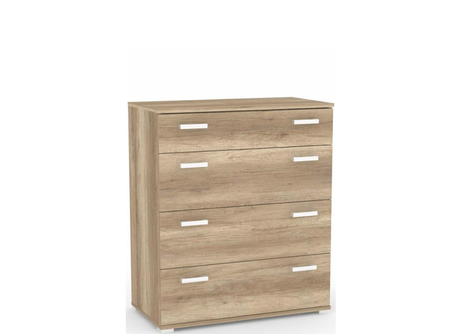Moderná komoda REA SISA 3 pozostáva zo štyroch samostatných zásuviek. Komoda so zásuvkami je určená do každej miestnosti - do spálne, do obývačky, do detskej izby, do predsiene, do kuchyne alebo do haly. Komoda REA SISA 3 je vyrobená z kvalitnej laminovanej drevotrieskovej dosky.