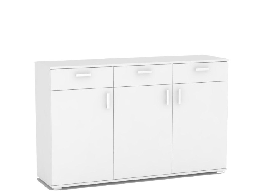 Komoda REA SISA 8 sa skladá z troch dvierok a troch zásuviek a poskytuje tak množstvo úložného priestoru. Komoda do domácnosti je vyrobená z kvalitnej laminovanej drevotrieskovej dosky.