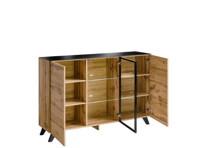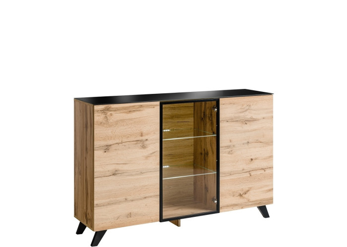 Nábytok Thin je vyrobený z kvalitnej laminovanej drevotriesky. Štýlovo je určený do moderných obývacích izieb. Charakteristickým prvkom sú čierne nohy a horné dosky skriniek. V cene skriniek je LED osvetlenie a spomaľovače na dvierka.