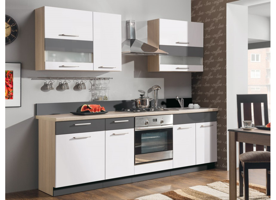 Kuchyňa MODENA poskytuje vysokú kvalitu za rozumnú cenu. Korpusy skriniek sú vyrobené z kvalitnej laminovanej drevotriesky a dvierka z MDF materiálu. Zásuvky majú kovové METABOXY, na ktoré je možné zakúpiť spomaľovače. Horné výklopné skrinky majú plynové piesty. Vyskladajte si sektorovú kuchyňu podľa vlastných predstáv.