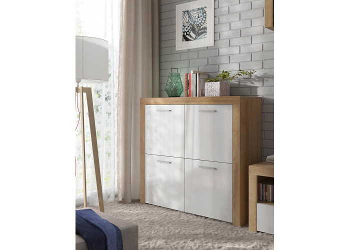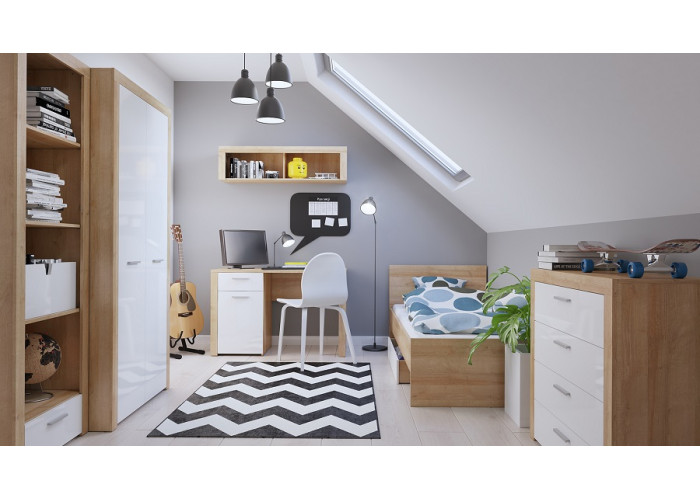 Sektorový nábytok BALDER sa skladá z regálov, komody, vitrín aj postele. Zariadiť si ním môžete tak obývaciu ako aj detskú izbu. Má minimalistický dizajn, vzor dreva a jemné úchytky.