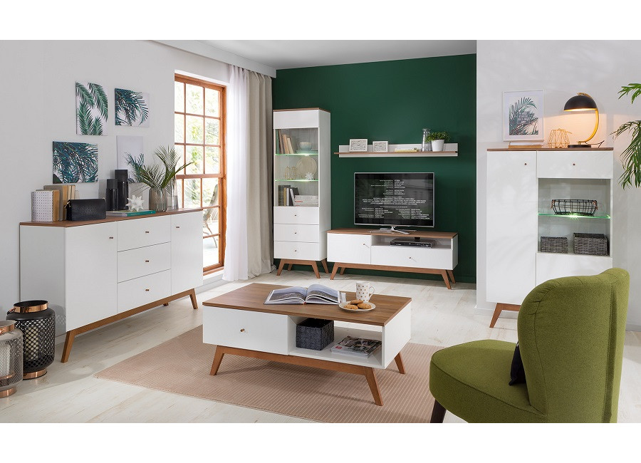 Kolekcia nábytku HEDA patrí do štýlu vintage. Vyznačuje sa vysokými masívnymi nožičkami vyrobenými z borovicového dreva a minimalistickými úchytkami. Vyberte si z niekoľkých sektorových prvkov.