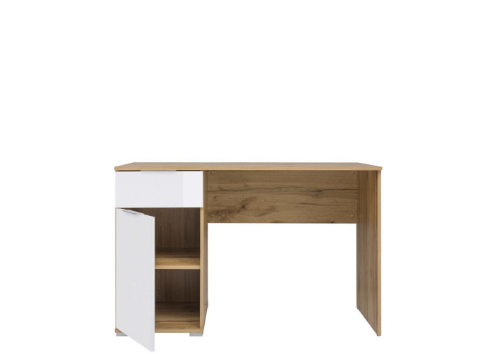 Nábytok ZELE sa vyznačuje jednoduchým dizajnom s minimalistickými úchytkami. Vyrába sa v obľúbenej farbe dub wotan v kombinácií s bielym leskom.