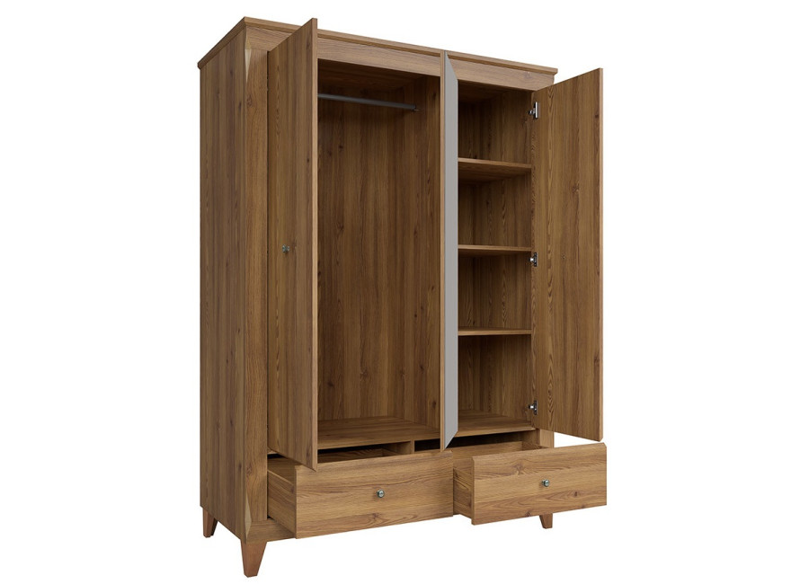 Nábytková kolekcia BERGEN sa vyrába v obľúbenom farebnom prevedení smrekovec sibiu zlatý. Vyšší štandard tohto nábytku je daný vodiacimi koľajničkami s tichým uzatváracím systémom a značkovými závesmi so spomalením dvierok pri konečnej fáze zatvárania. Všetky skrinky majú kovové úchytky. Nábytok má jedinečný tvar, dizajn a originálne detaily. Vyberte si zo sektorových skriniek.