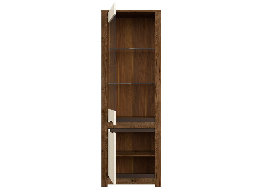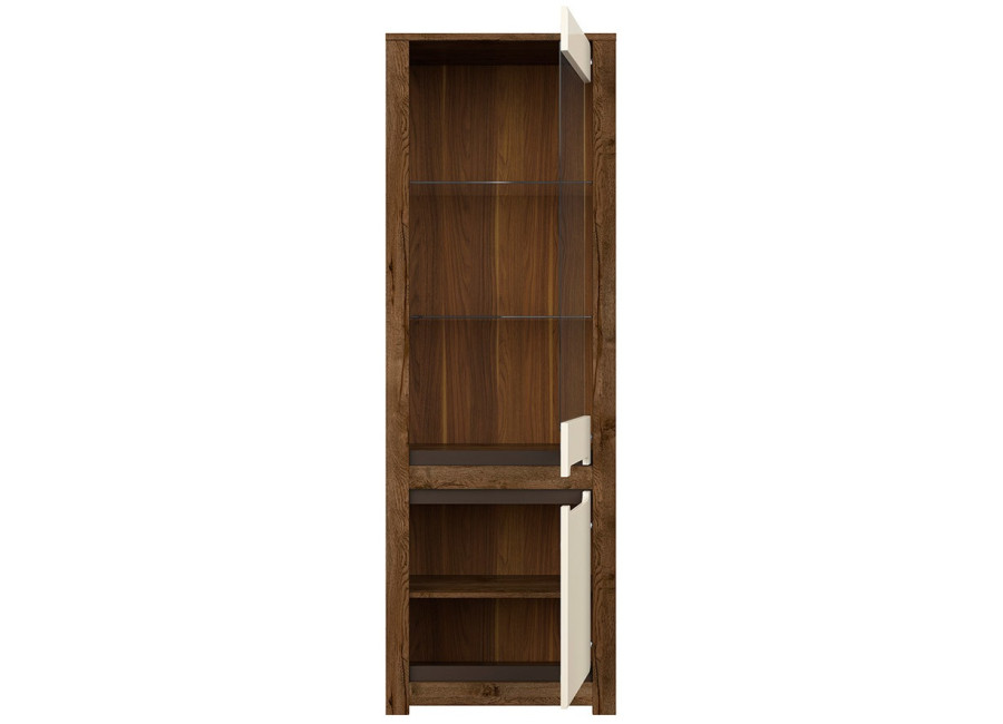 Nábytok RUSO sa hodí na zariadenie moderných interiérov. Výrazným prvkom je farba dreva doplnená o perlový lesk na predných plochách. Skrinky majú dizajnové úchytky vyfrézované do dvierok a kovanie s tichým domykaním.