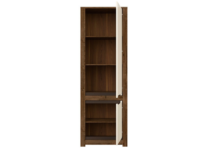 Nábytok RUSO sa hodí na zariadenie moderných interiérov. Výrazným prvkom je farba dreva doplnená o perlový lesk na predných plochách. Skrinky majú dizajnové úchytky vyfrézované do dvierok a kovanie s tichým domykaním.