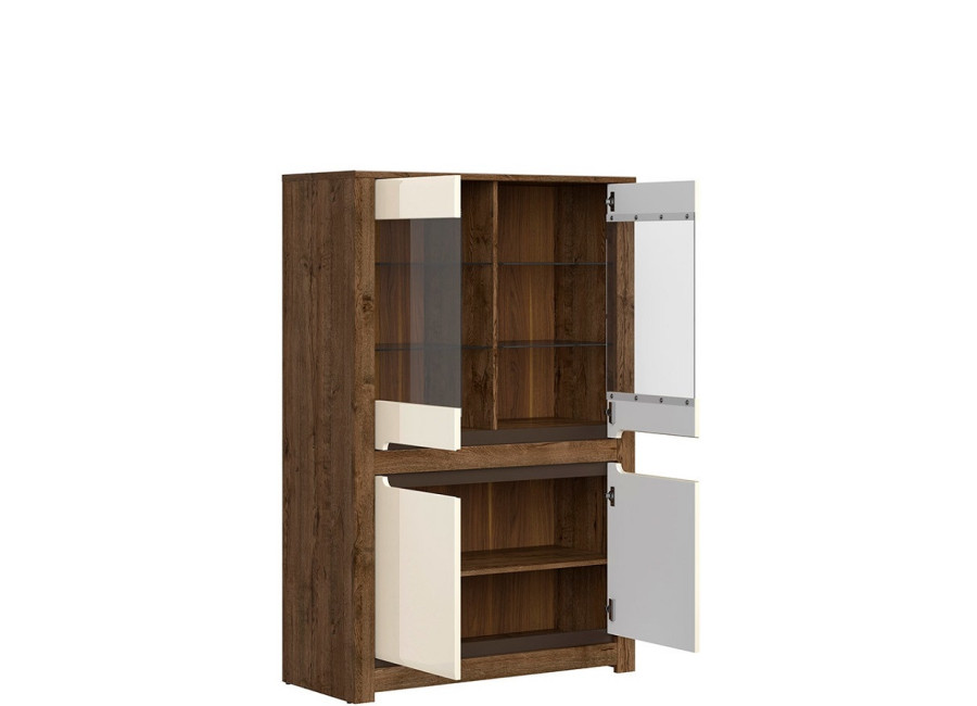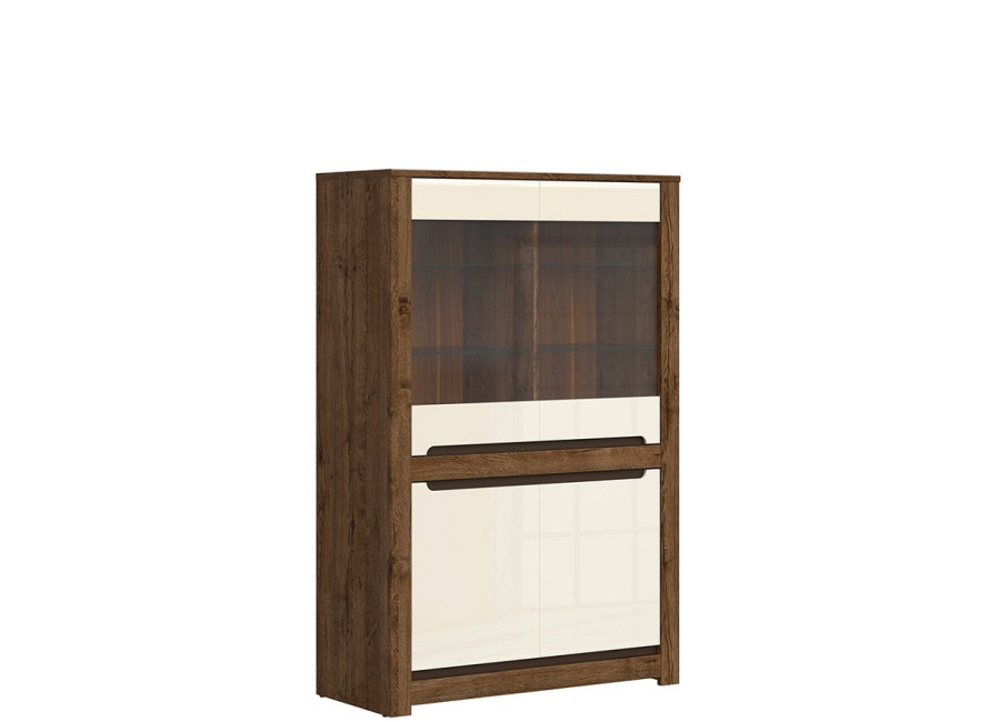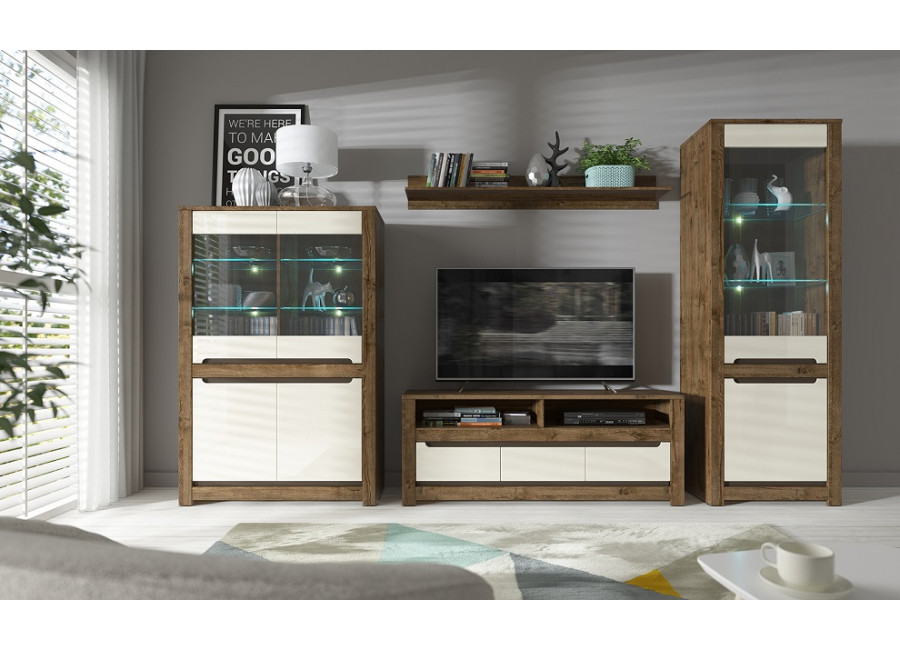Nábytok RUSO sa hodí na zariadenie moderných interiérov. Výrazným prvkom je farba dreva doplnená o perlový lesk na predných plochách. Skrinky majú dizajnové úchytky vyfrézované do dvierok a kovanie s tichým domykaním.