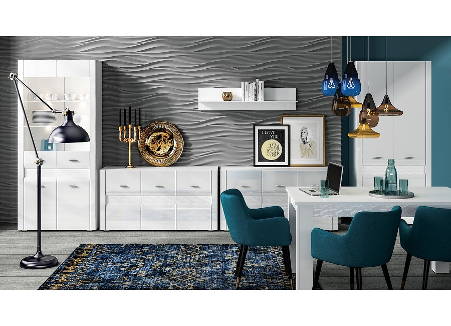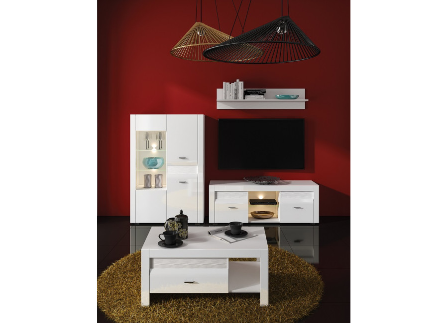Biely nábytok je ikonou elegancie, ktorá dodáva priestoru ľahkosť, priestrannosť a sviežosť. Nábytok ARKO má jedinečný dizajn v bielej farbe s vysoko lesklými prednými plochami a ozdobnou drážkou. Kolekcia ARKO sa hodí na zariadenie obývacej izby a jedálne. Moderný štýl a vysoká kvalita uspokojí každého člena domácnosti. Zásuvky majú systém plnovýsuvu so samodoťahom. Skrinky majú frézované MDF čelá potiahnuté lesklo fóliou a kovové úchytky.