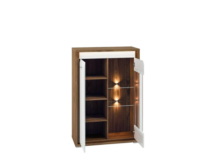 Nábytok DALLAS má luxusný dizajn. Farba prírodného orechu a bieleho lesku dodáva interiéru eleganciu a sviežosť. DALLAS má charakteristické predné čelné drážkované panely vo farbe biely lesk, ktoré mu dodávajú eleganciu a exkluzivitu.