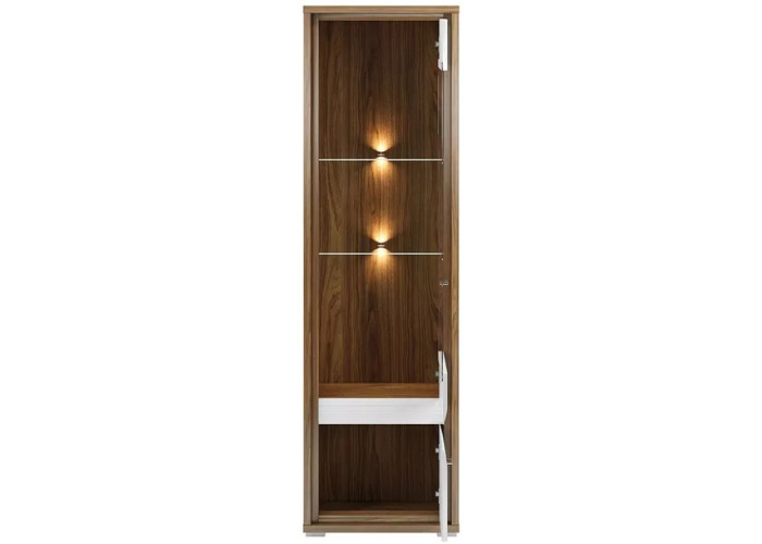 Nábytok DALLAS má luxusný dizajn. Farba prírodného orechu a bieleho lesku dodáva interiéru eleganciu a sviežosť. DALLAS má charakteristické predné čelné drážkované panely vo farbe biely lesk, ktoré mu dodávajú eleganciu a exkluzivitu.