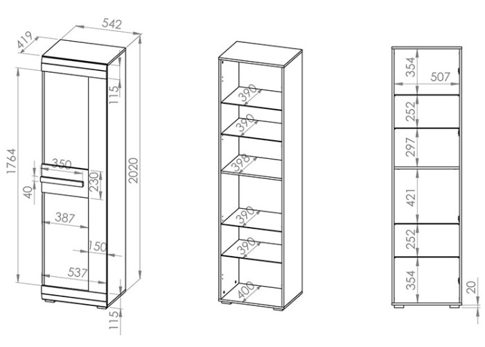 Rozmery v/š/h202 x 55 x 42 cm
