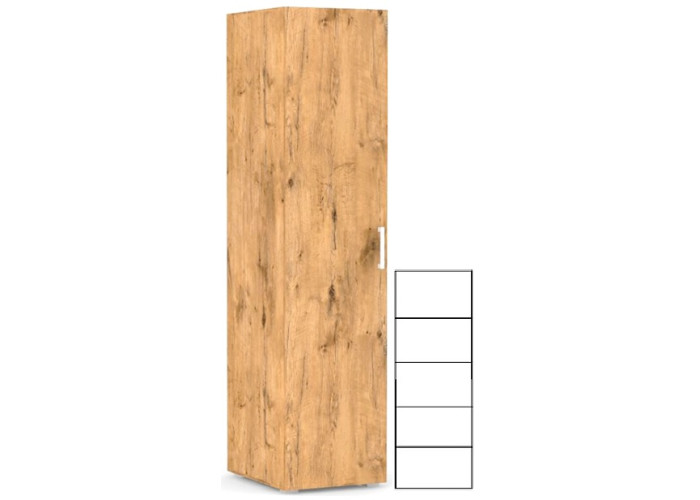 Policová skriňa REA VENEZIA 1 do spálne je ideálnym úložným priestorom na oblečenie, do ktorejkoľvek časti spálňovej steny zo sektorového nábytku REA VENEZIA. Skriňa má vo vnútri celkom štyri police a úložný priestor je rozdelený na päť rovnakých častí. Policová skriňa má univerzálne otváranie dverí, t.j. otvárať dvere je možné ako sprava doľava, tak aj zľava doprava. Pánty dverí skrine je možné pripevniť na ľavej alebo pravej strane. Šatníková skriňa do spálne je vyrobená z laminovanej drevotrieskovej dosky.