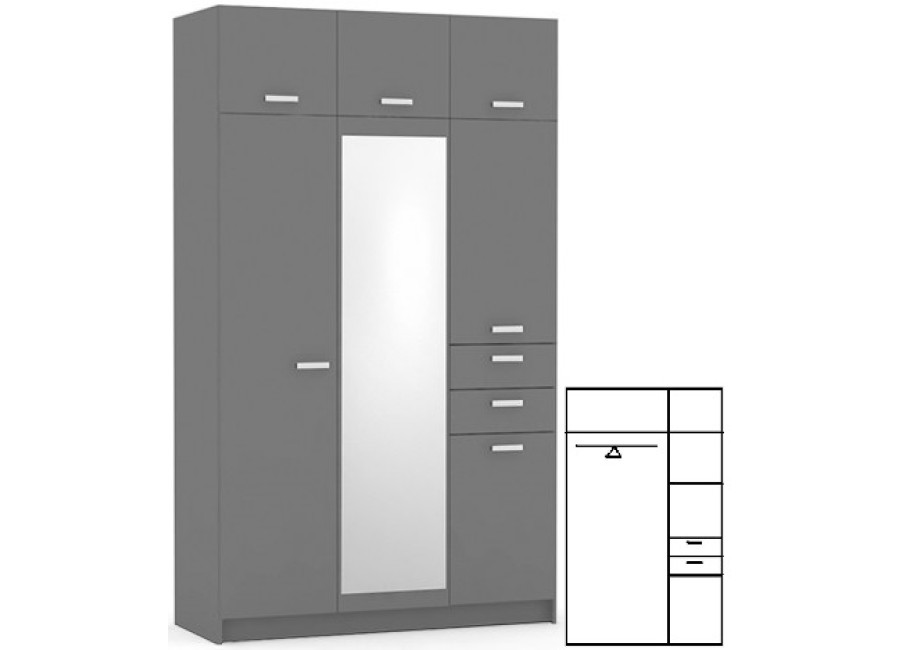 Praktická skriňa do predsiene REA 700 je vhodná ako úložný priestor na každodenné oblečenie, nohavice, košele, ale aj dáždniky, topánky, hrebene a ďalšie často používané predmety pred odchodom z bytu alebo domu. Trojdielna skriňa do predsiene je rozdelená na vešiakovú, policovú a šuflíkovú časť. Nadstavec na skriňu, ktorý je jej súčasťou, je rozdelený tiež na tri rovnaké časti a poskytuje množstvo úložného priestoru, napríklad na sezónne topánky. Na dverách a šuflíkoch skrine sa nachádzajú praktické kovové úchytky.