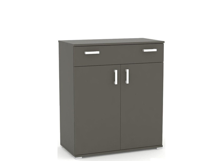 Komoda s praktickou zásuvkou a dvomi dvierkami. Vo vnútri komody je jedna polica. Komoda REA SISA 1 je vyrobená z kvalitnej laminovanej drevotrieskovej dosky.