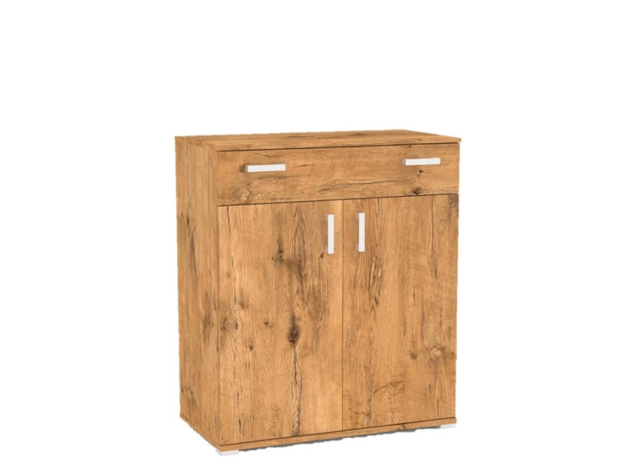 Komoda s praktickou zásuvkou a dvomi dvierkami. Vo vnútri komody je jedna polica. Komoda REA SISA 1 je vyrobená z kvalitnej laminovanej drevotrieskovej dosky.