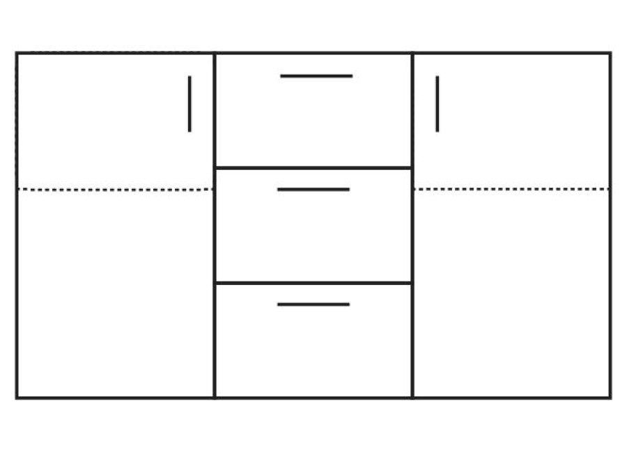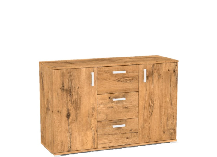 Komoda REA SISA 4 pozostáva z troch zásuviek, naboku sa nachádzajú dve dvierka, ktoré sú vo vnútri rozdelené na dve časti jednou poličkou. Komoda REA SISA 4 je vhodná do každej miestnosti - do spálne, do obývačky, do detskej izby, do predsiene, kuchyne alebo do haly. Komoda je vyrobená z kvalitnej laminovanej drevotrieskovej dosky.