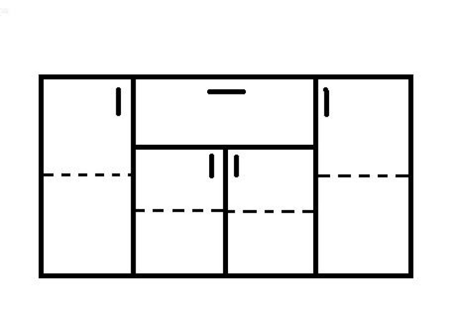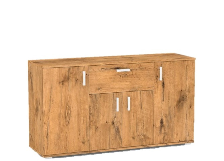 Moderná komoda REA SISA 6 pozostáva zo štyroch dvierok a jednej zásuvky. V každej dvierkovej časti je vo vnútri vložená polica. Komoda do spálne je vyrobená z kvalitnej laminovanej drevotrieskovej dosky.