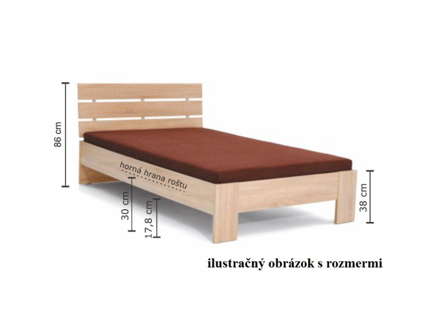 | Výška po hornú hranu roštu | 30 cm + matrac, ktorý si vyberiete |