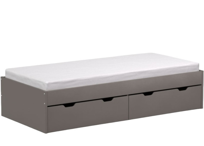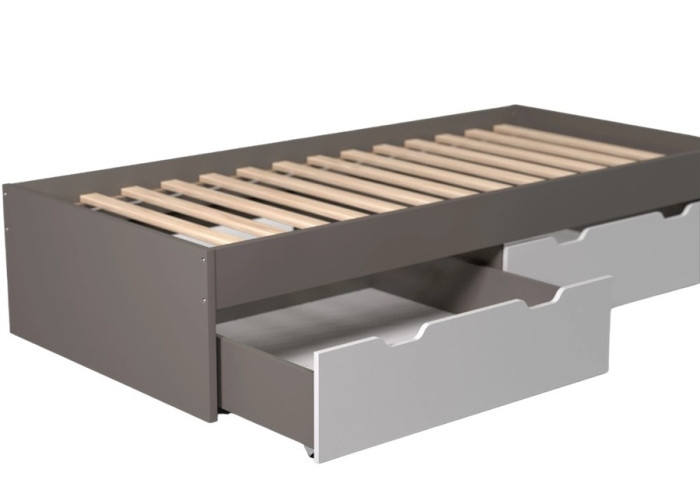 Moderná posteľ do detskej izby REA MISTY je vyrobená z kvalitnej laminovanej drevotrieskovej dosky. Pod lôžkom na spanie sa nachádzajú dve praktické zásuvky s úložným priestorom napríklad na detské hračky alebo periny, ktoré jednoducho vysuniete vďaka kolieskam na spodnej strane. Odporúčaná hmotnosť jedného jedinca na posteľ je max. 150 kg.
