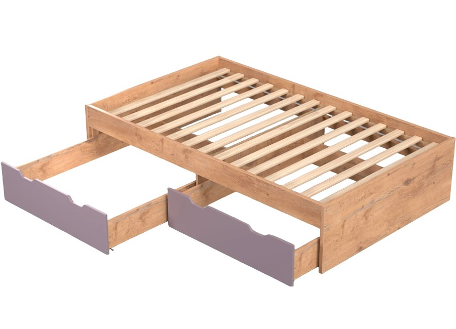 Moderná posteľ do detskej izby REA MISTY je vyrobená z kvalitnej laminovanej drevotrieskovej dosky. Pod lôžkom na spanie sa nachádzajú dve praktické zásuvky s úložným priestorom napríklad na detské hračky alebo periny, ktoré jednoducho vysuniete vďaka kolieskam na spodnej strane. Odporúčaná hmotnosť jedného jedinca na posteľ je max. 150 kg.