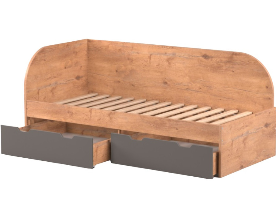 Moderná jednolôžková posteľ REA GARY do detskej izby je vyrobená z kvalitnej laminovanej drevotrieskovej dosky. A keďže bezpečnosť detí je pre nás prioritou, tak posteľ má na okrajoch zaoblené čelá bez ostrých hrán, ktoré sú spojené pevnou bočnicou. Pod lôžkom na spanie sa nachádzajú dve praktické zásuvky s úložným priestorom napríklad na detské hračky alebo periny, ktoré jednoducho vysuniete vďaka kolieskam na spodnej strane. Odporúčaná hmotnosť jedného jedinca na posteľ je max. 150 kg.