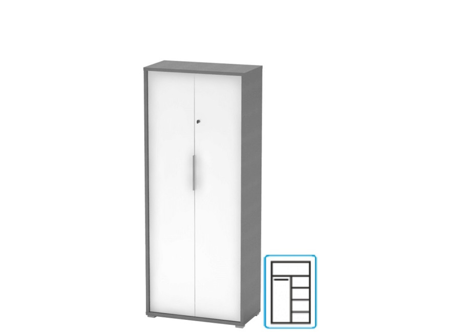 RIOMA NEW grafit/biela 31, kancelárska šatníkovo-policová skriňa so zámkom