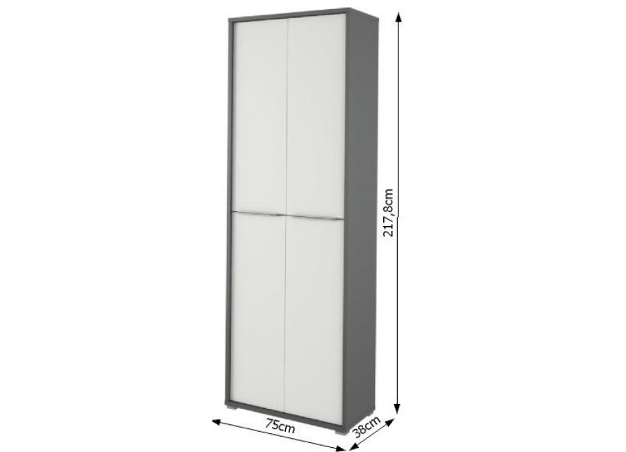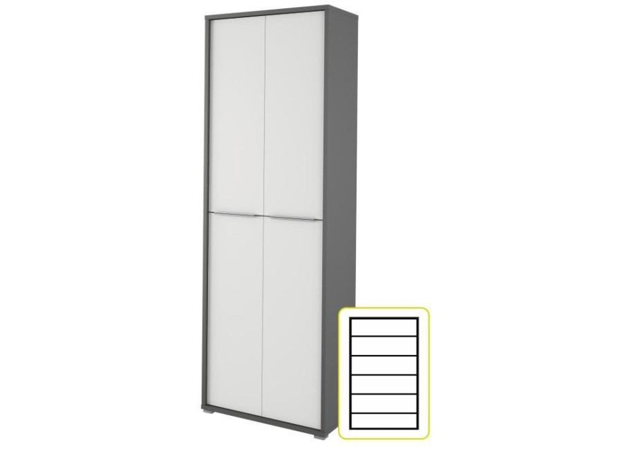 Kancelársky nábytok RIOMA vo farbe grafit/biela je kvalitný slovenský výrobok. Korpus skriniek a police sú vyrobené z laminovanej drevotriesky v hrúbke 22m, dvierka majú hrúbku 16mm a kovovú úchytku. Vyberte si zo širokej ponuky sektorového kancelárskeho nábytku.