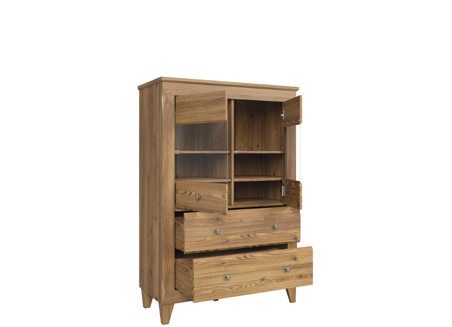 Nábytková kolekcia BERGEN sa vyrába v obľúbenom farebnom prevedení smrekovec sibiu zlatý. Vyšší štandard tohto nábytku je daný vodiacimi koľajničkami s tichým uzatváracím systémom a značkovými závesmi so spomalením dvierok pri konečnej fáze zatvárania. Všetky skrinky majú kovové úchytky. Nábytok má jedinečný tvar, dizajn a originálne detaily. Vyberte si zo sektorových skriniek.