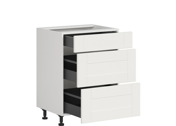 Kuchynská dolná skrinka so zásuvkami EDAN D3S60 je ideálnou voľbou do každej kuchyne. Skrinka do kuchyne je široká 60 cm. Korpus skrinky je vyrobený z kvalitnej laminovanej drevotriesky a môžete si vybrať z viacerých farebných prevedení. Dvierka skrinky sú z odolného MDF materiálu v štýlovej farbe biely canadian, ktorá je mimoriadne obľúbená najmä pri návrhoch bielych kuchýň.