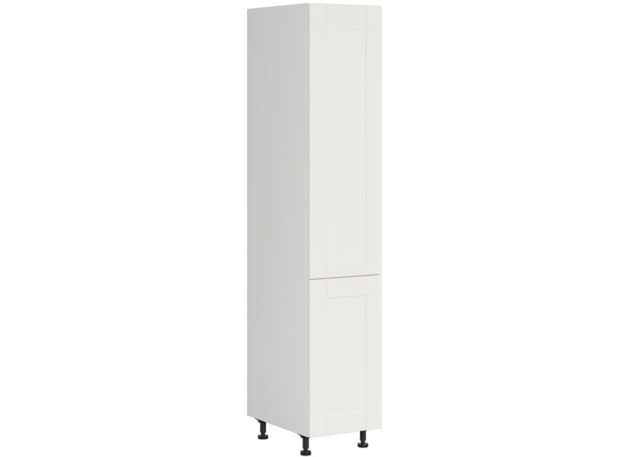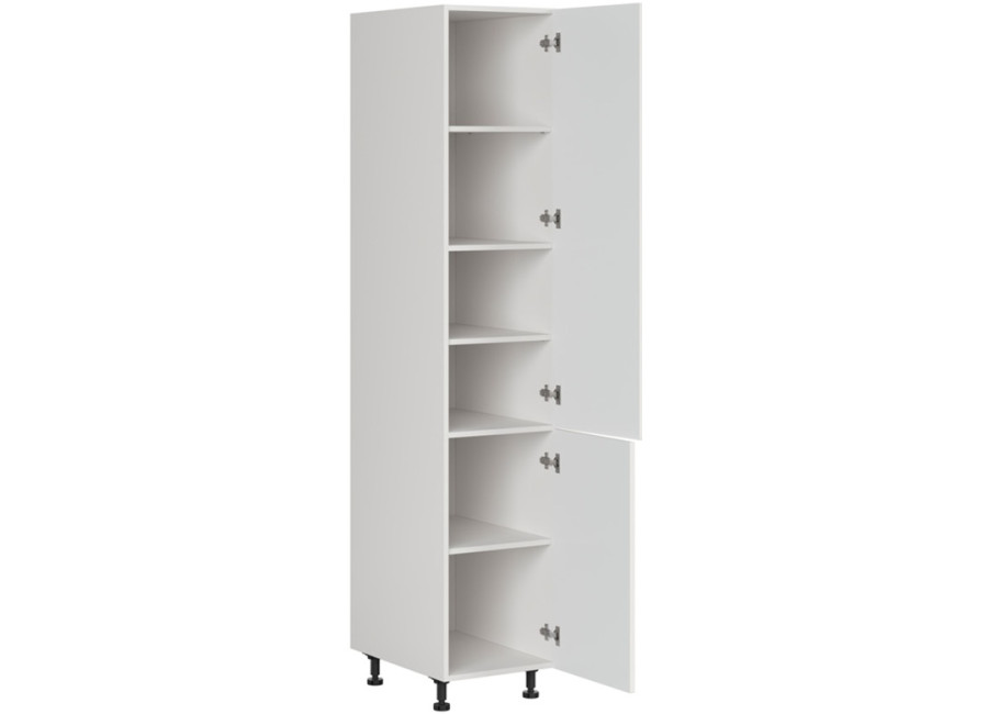 Kuchynská potravinová skrinka EDAN D40/207 vo farbe biely canadian predstavuje ideálnu voľbu pre tých, ktorí hľadajú veľký úložný priestor. Policová skriňa s výškou 207 cm a šírkou 40 cm je navrhnutá pre maximálne využitie úložného priestoru v kuchyni, pričom zostáva elegantným doplnkom každej bielej kuchyne. Zásluhou praktických nastaviteľných nožičiek s výškou 10 cm si ľahko prispôsobíte výšku skrinky podľa vašich potrieb a zároveň si môžete zvoliť ľavé alebo pravé otváranie dvierok.