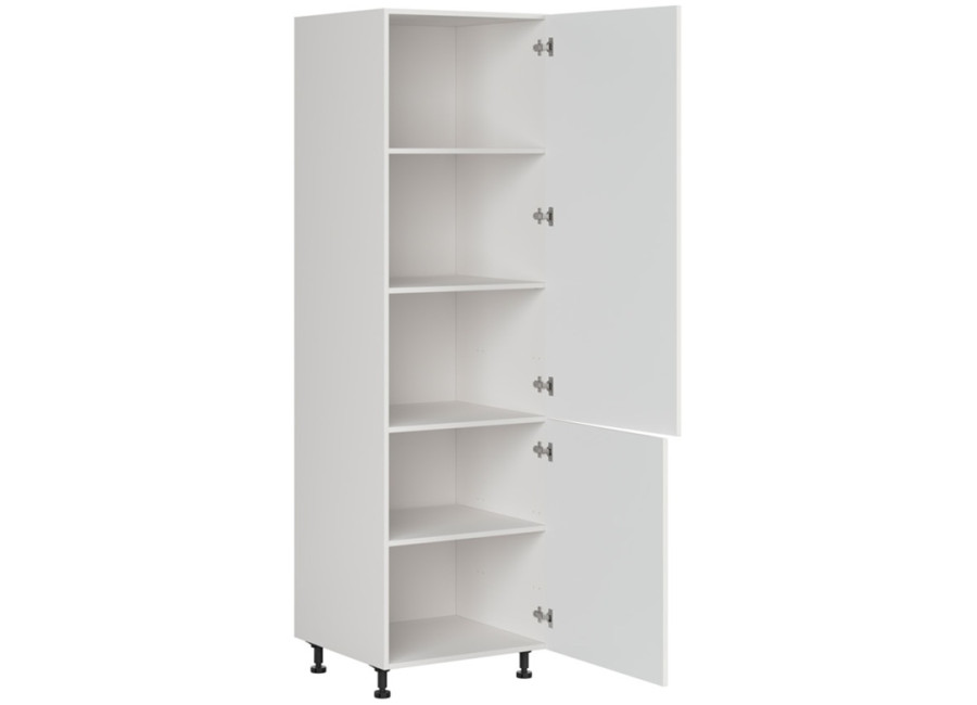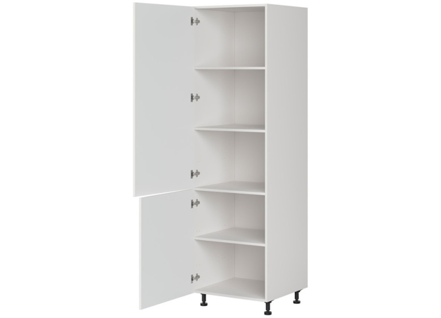 Kuchynská potravinová skrinka EDAN D60/207 vo farbe biely canadian predstavuje ideálnu voľbu pre tých, ktorí hľadajú veľký úložný priestor. Policová skriňa s výškou 207 cm a šírkou 60 cm je navrhnutá pre maximálne využitie úložného priestoru v kuchyni, pričom zostáva elegantným doplnkom každej bielej kuchyne. Zásluhou praktických nastaviteľných nožičiek s výškou 10 cm si ľahko prispôsobíte výšku skrinky podľa vašich potrieb a zároveň si môžete zvoliť ľavé alebo pravé otváranie dvierok.