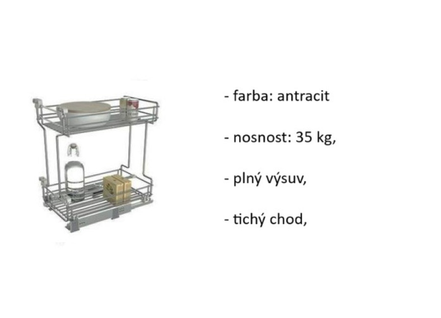 Ku skrinke je potrebné zakúpiť samostatne pracovnú dosku, úchytky a sokel.