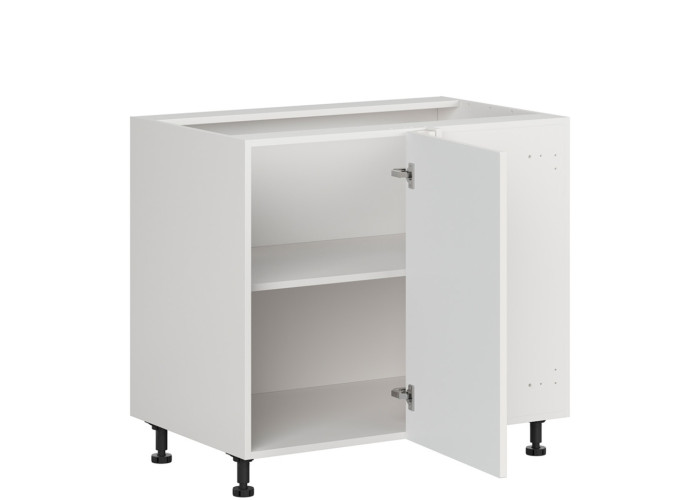 Dvierka sú z MDF materiálu v elegantnej farbe biely canadian. Kuchynská skrinka stojí na nastaviteľných nožičkách s výškou 10 cm, čím uľahčuje údržbu pod skrinkou i prispôsobenie výšky skrinky vašim potrebám. Navyše, pre tých, ktorí túžia po ešte praktickejšom úložnom priestore, je tu možnosť dokúpiť aj výsuvné police, ktoré výrazne zlepšujú prístupnosť a využiteľnosť vnútra rohovej skrinky.