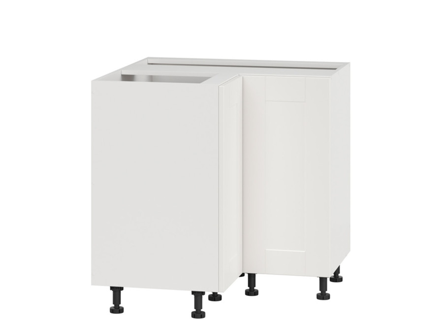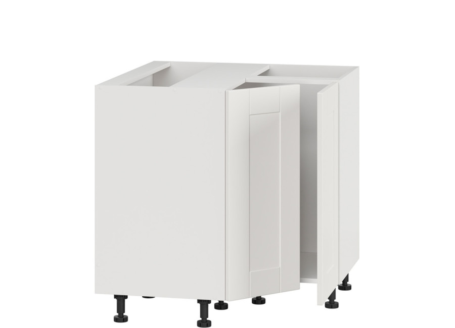 Dvierka sú z MDF materiálu v elegantnej farbe biely canadian. Kuchynská skrinka stojí na nastaviteľných nožičkách s výškou 10 cm, čím uľahčuje údržbu pod skrinkou i prispôsobenie výšky skrinky vašim potrebám. Navyše, pre tých, ktorí túžia po ešte praktickejšom úložnom priestore, je tu možnosť dokúpiť aj výsuvné police, ktoré výrazne zlepšujú prístupnosť a využiteľnosť vnútra rohovej skrinky.