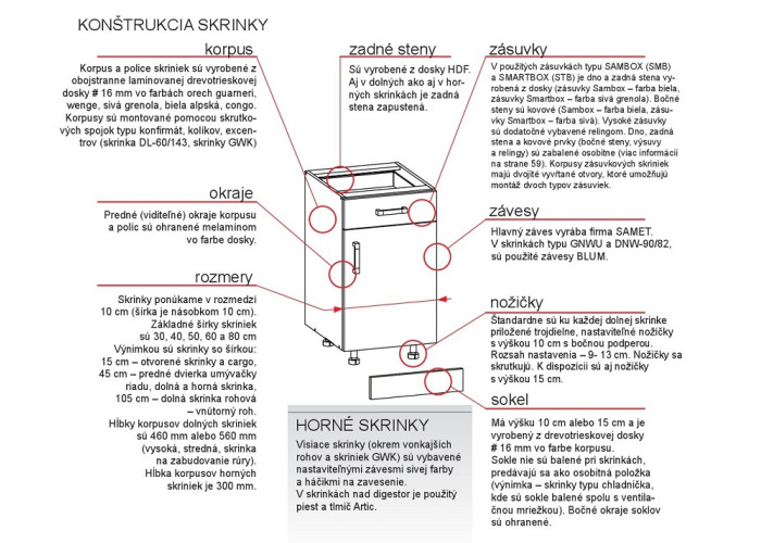| Farebné prevedenie korpusu | šedý grenola, wenge, biela alpská, congo |