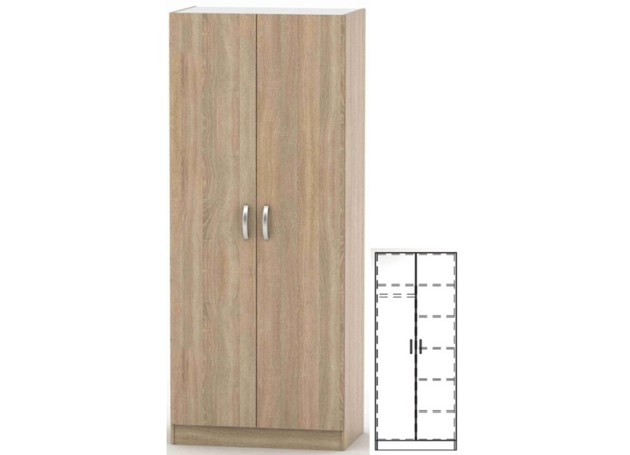 Ľavá strana skrine je šatníková s jednou policou v hornej časti a pravá strane je len policová.