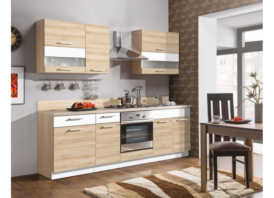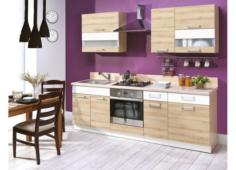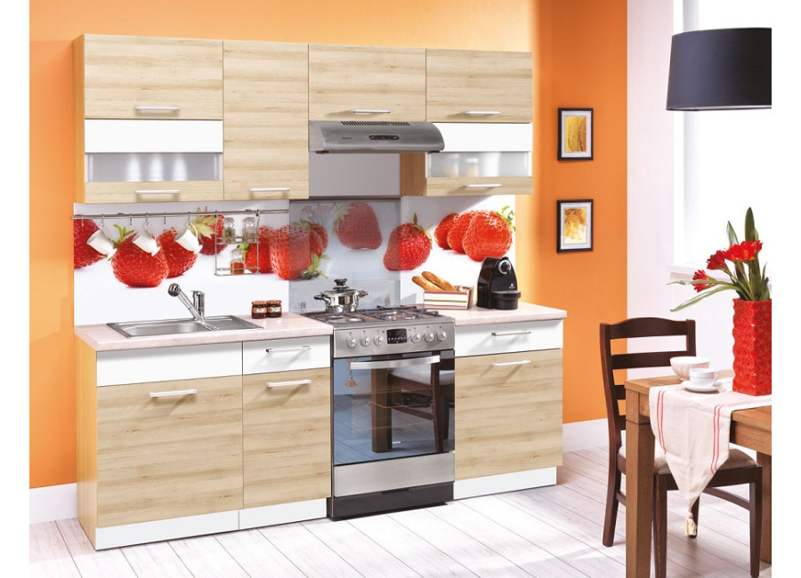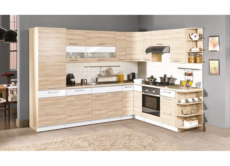 Nové elegantné farebné prevedenie kuchyne MODENA. Farebná kombinácia buku s biely leskom sa hodí do moderných interiérov, ktoré príjemne osvieži. Ponúkame Vám široký výber sektorových skriniek aj akciové komplety. Zásuvkové skrinky majú kvalitné kovové kovanie s vysokou nosnosťou, dvierka sú ohranované 2mm ABS hranou.