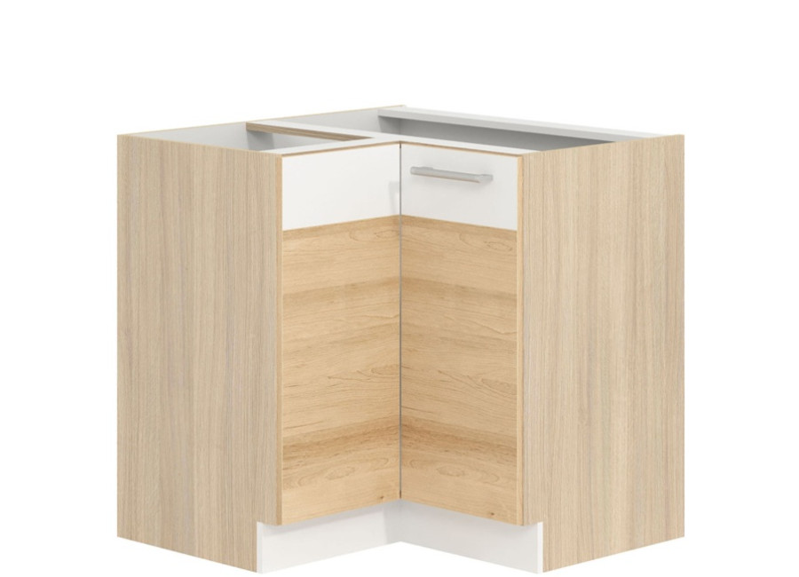 MODENA buk/biely lesk MD21/D90NW, dolná rohová skrinka v šírke 90x90 cm