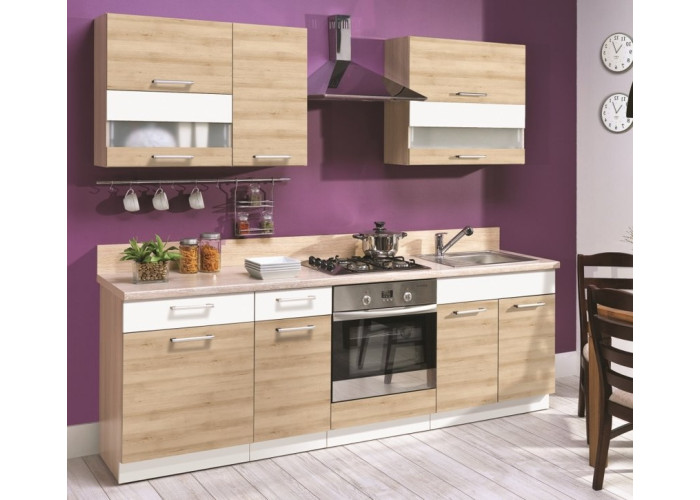 Nové elegantné farebné prevedenie kuchyne MODENA. Farebná kombinácia buku s biely leskom sa hodí do moderných interiérov, ktoré príjemne osvieži. Ponúkame Vám široký výber sektorových skriniek aj akciové komplety. Zásuvkové skrinky majú kvalitné kovové kovanie s vysokou nosnosťou, dvierka sú ohranované 2mm ABS hranou (viď ilustračné obrázky).