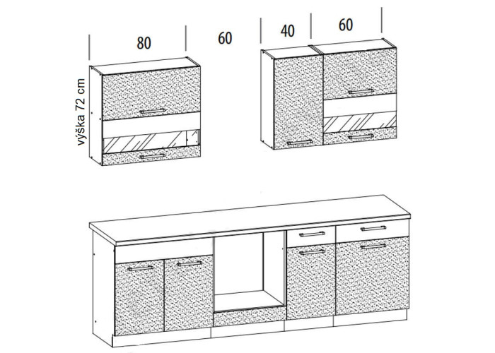 | Celková dĺžka horných skriniek | 180 cm |