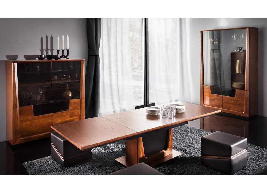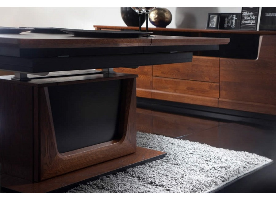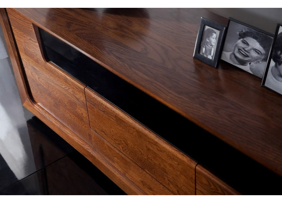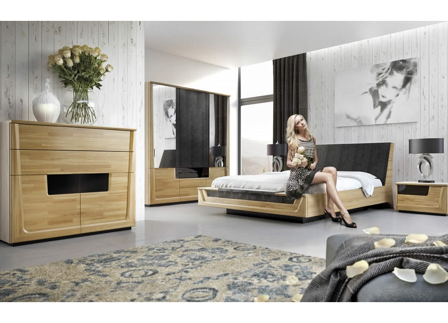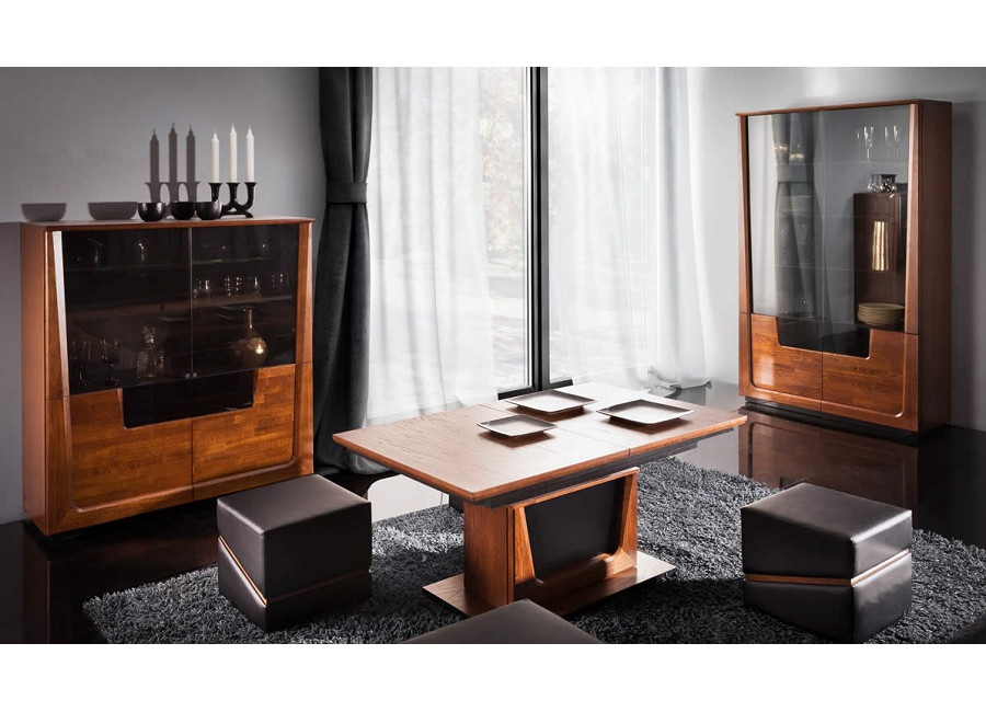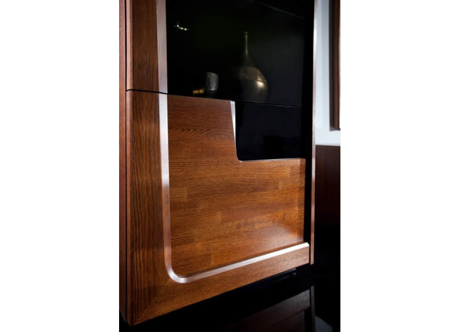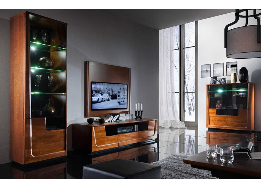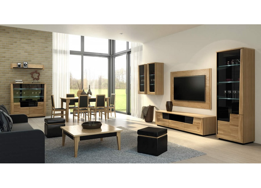 Krása prírodných materiálov - dreva a dubovej dýhy, moderné technológie, skvelý dizajn a perfektné spracovanie sú charakteristickým znakom nábytku MAGANDA. Krásne farby prírodného duba a antického orechu zvýraznené čiernymi doplnkami urobia Váš interiér útulný a elegantný. Kolekcia má široký výber vitrín s LED osvetlením a skriniek s PUSH to OPEN otváraním.